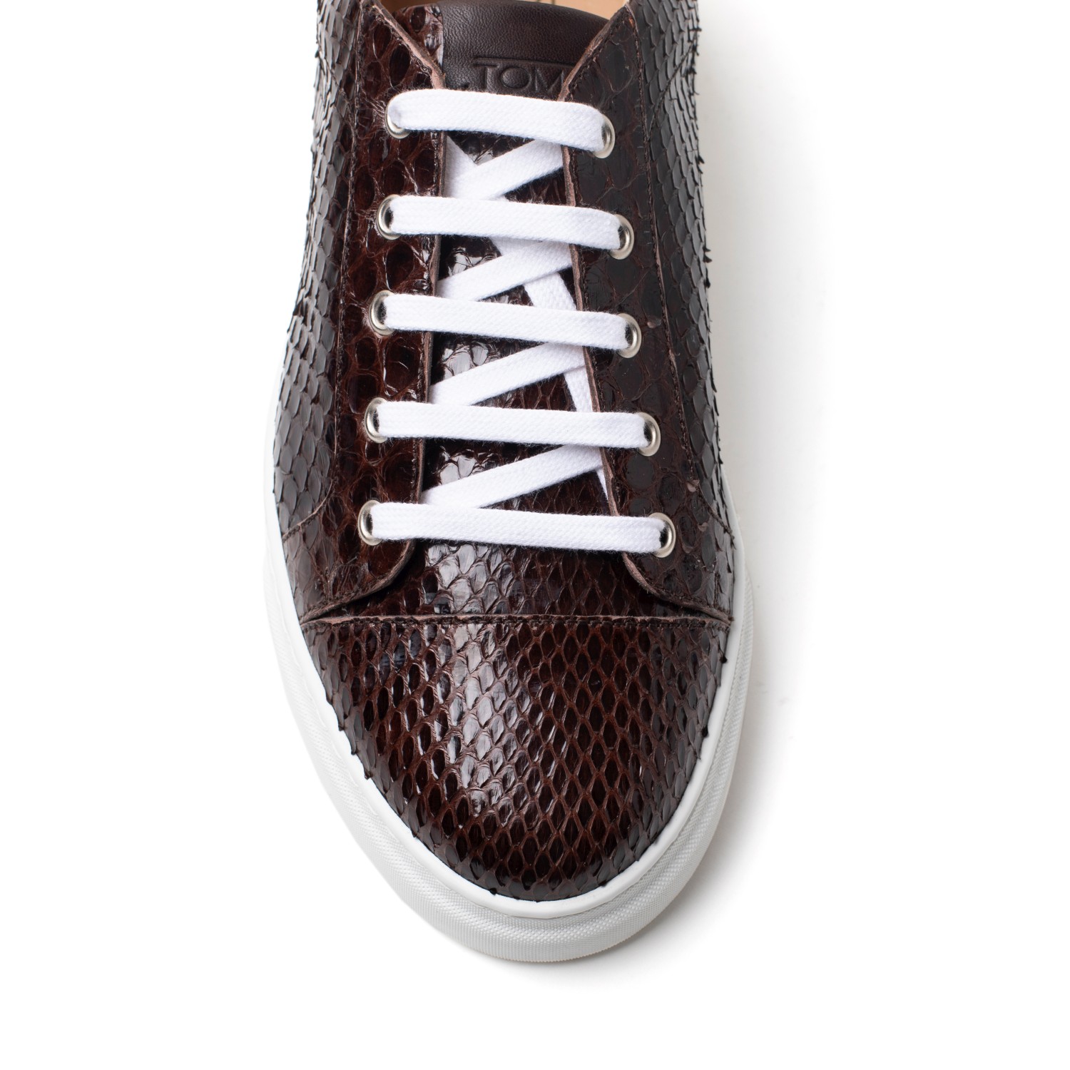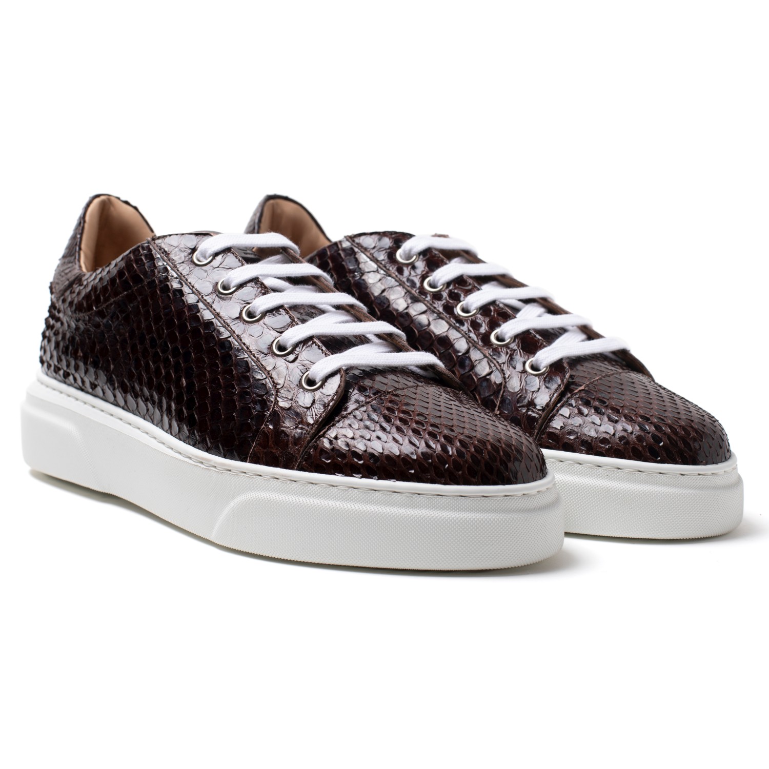 Presentiamo le Sneakers realizzate in pregiata pelle di pitone. Un modello stringato dalla silhouette intramontabile ed essenziale. Suola alta in gomma di colore bianco, stringhe gros grain. Il pitone è un pellame estremamente morbido ed elastico che acquista maggior fascino con il passare degli anni senza mai perdere le sue caratteristiche migliori. Made in Italy.