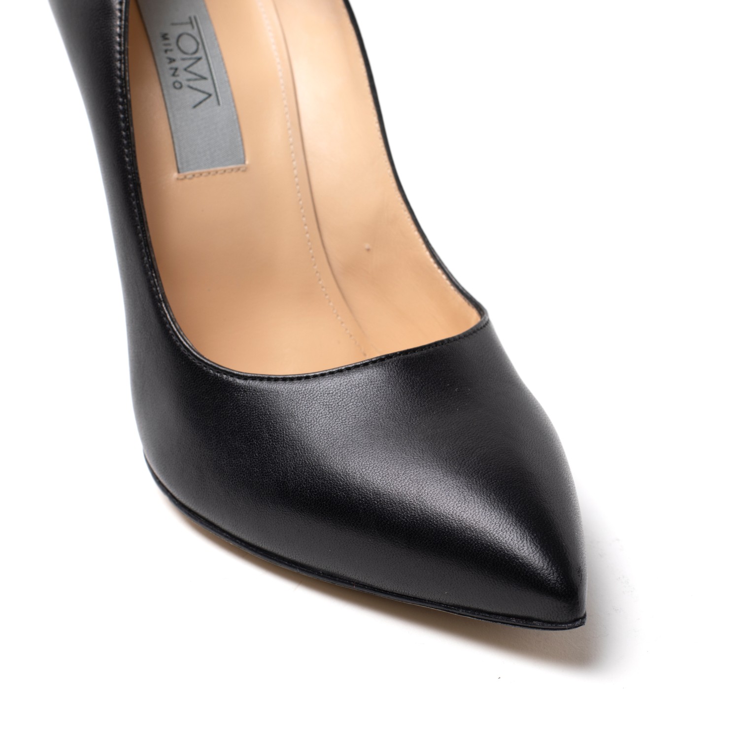 L’iconica décolleté in nappa della Maison TOMA ha uno stile inconfondibile che riflette eleganza e femminilità. In piedi su un tacco a spillo di 105 mm con una punta affusolata senza tempo. Ottima ergonomica e proporzioni ideali. Indossabile con qualsiasi outfit. Made in Italy