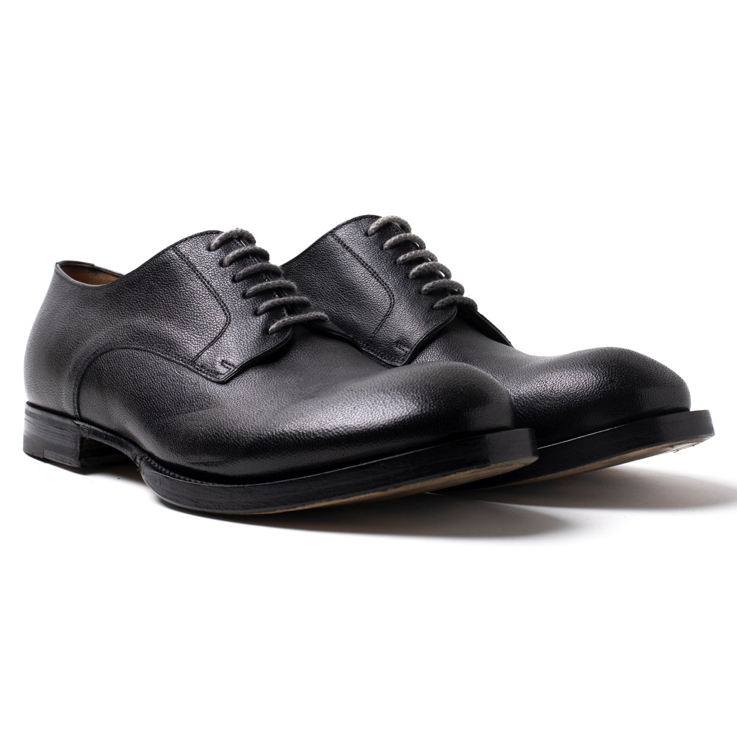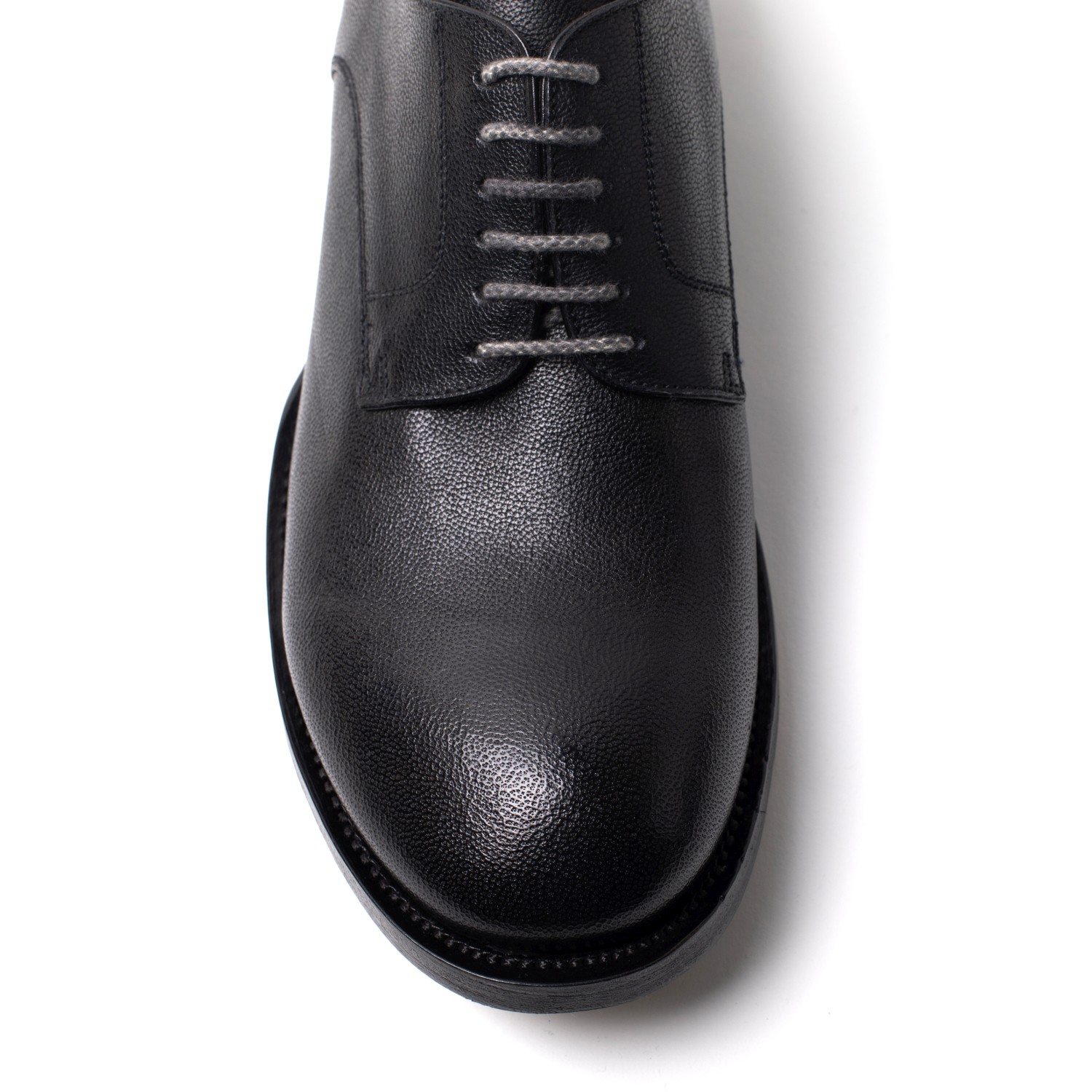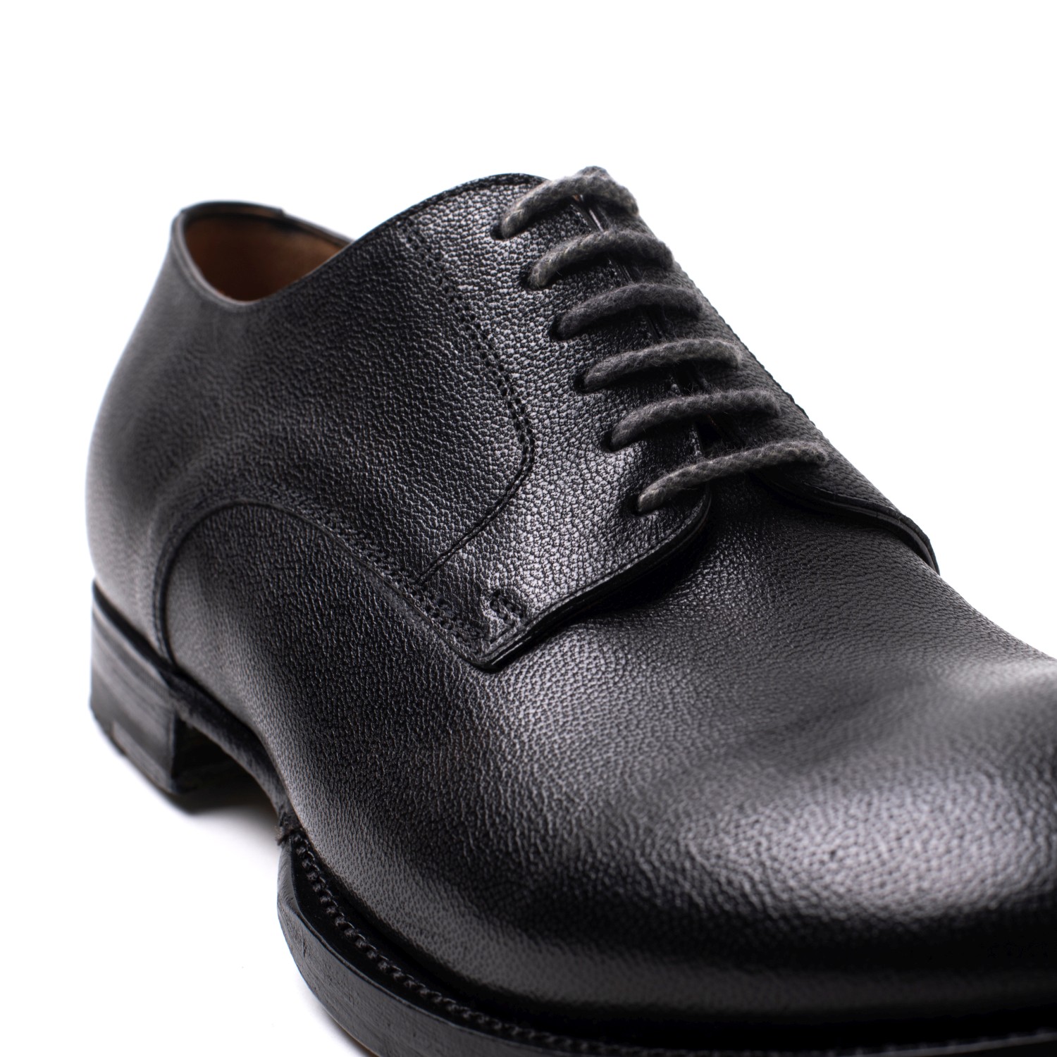 Derby realizzato in pelle di cammello ingrassata colore nero. Una calzatura moderna realizzata rigorosamente a mano.