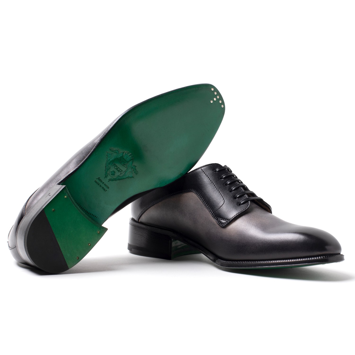 Colore: nero degradé – Effetto patinato creato a mano (50 minuti di lavoro per paio)