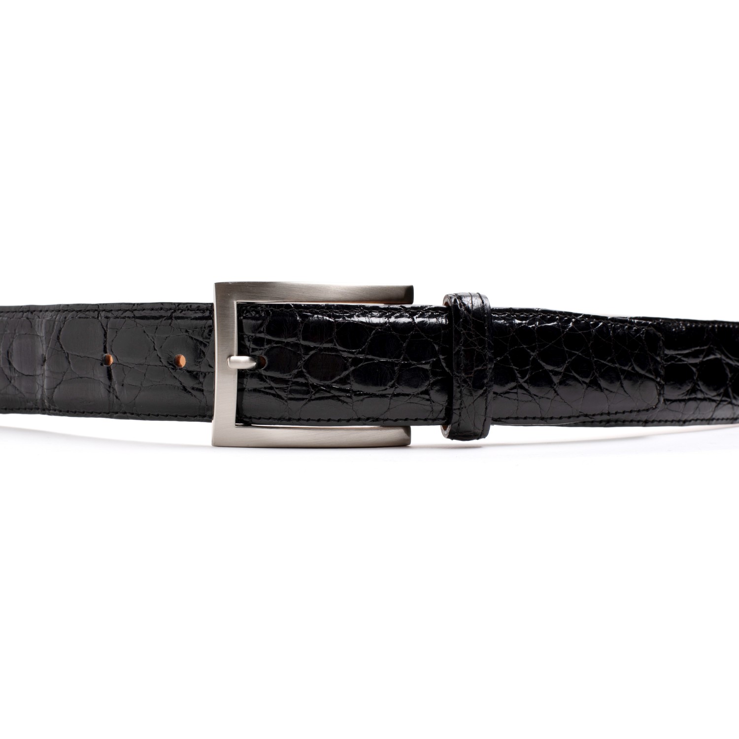 La cintura Nilo 40 mm. è realizzata in pregiata pelle di coccodrillo con fibbia argentata. Made in Italy.