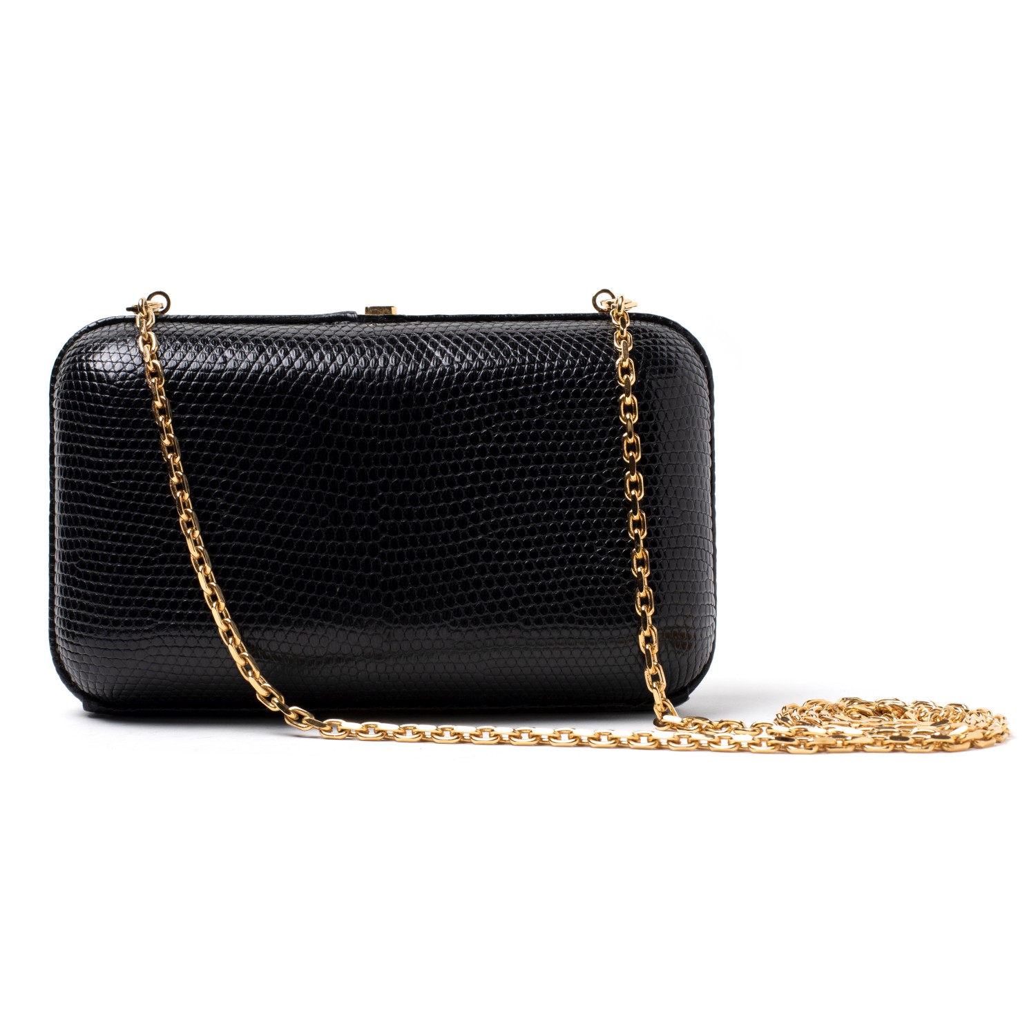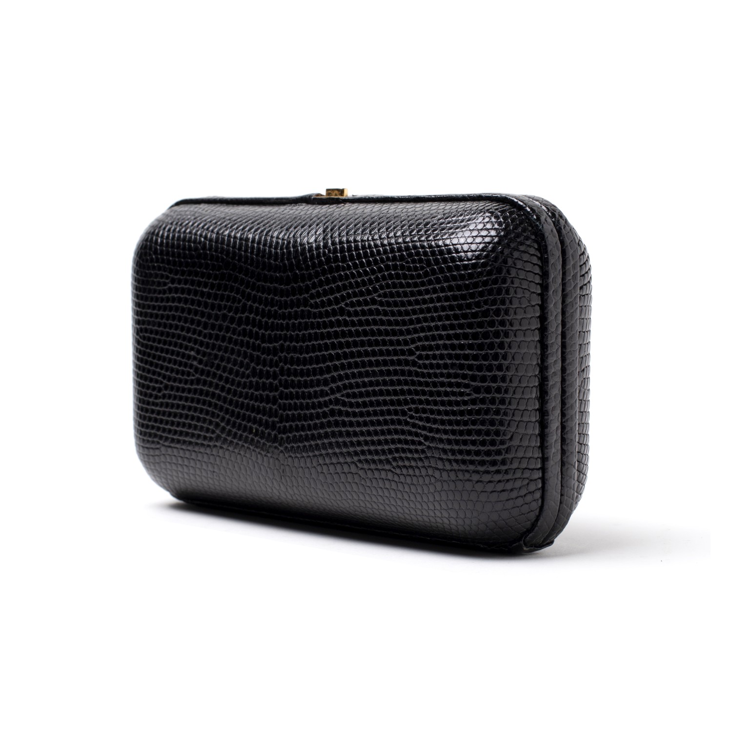 La pochette SUIKO, viene proposta in un’esclusiva versione realizzata in pregiata pelle di lizard colore nero. Include una catena per tracolla. Modello simbolo di un’eleganza capace di arricchire anche il look più semplice. Il fascino al potere. Made in Italy.